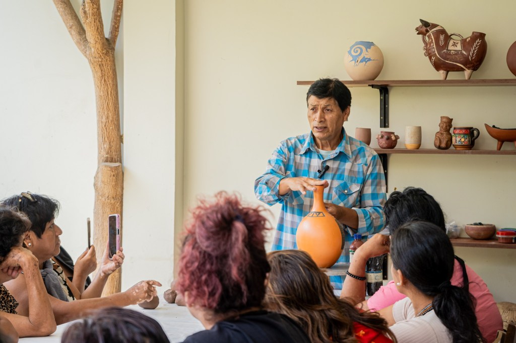 En esta experiencia formativa, se realizó una visita al reconocido taller artesanal del Sr. Moisés Paucar, ubicado en el distrito de Supe, un espacio emblemático donde el talento, la tradición y la identidad cultural se mantienen vivos a través del trabajo artesanal. Durante la visita, las participantes pudieron conocer nuevas líneas de producción, técnicas innovadoras y recibir orientación clave para la implementación y fortalecimiento de talleres artesanales con enfoque turístico.