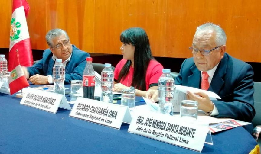 La iniciativa apunta a declarar de necesidad pública e interés nacional la Creación de la Región Policial Lima Provincias. El acto de exposición de esta propuesta legislativa; en el auditorio de la Municipalidad Provincial de Huaura, en Huacho; es presidida por la congresista de la República Vivian Olivos.