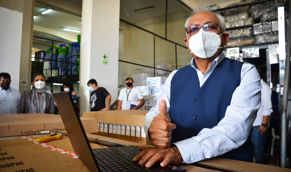 Demostrando que la educación es uno de los pilares de la actual gestión regional, el gobernador Ricardo Chavarría Oria supervisó el arribo de un total de 5,259 laptop, que serán entregados -en acto público- a los docentes del nivel de secundaria en las nueve provincias.