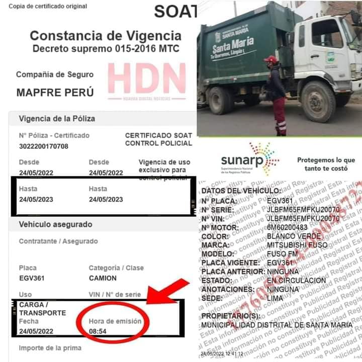 La desesperación de los trabajadores de la Municipalidad Distrital de Santa María que tiene como alcalde al señor JUAN CARLOS GARCÍA ROMERO, compran soat a las 8:54 AM del 24 de mayo 2022, para poder evadir la justicia y la responsabilidad, según las normas de tránsito, ningún vehículo puede transitar sin soat y peor aún cuando eres parte del estado.