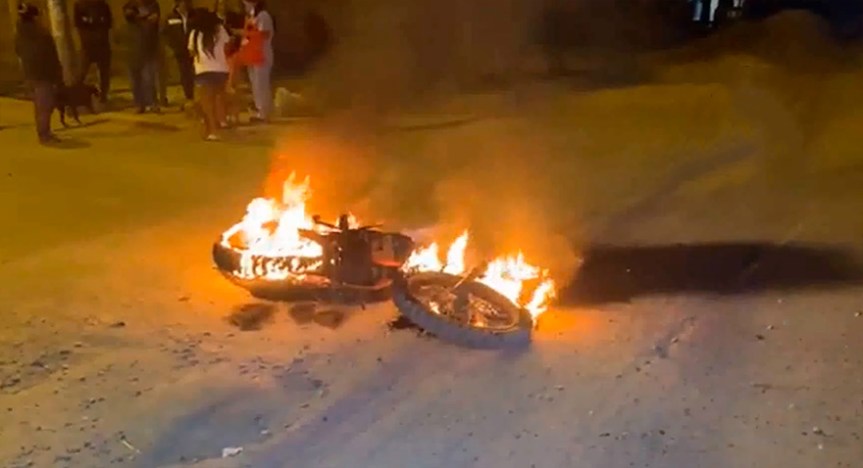 Los vecinos hartos de los actos delincuenciales, y en su afán de hacer justicia con sus propias manos, golpearon al presunto delincuente; asimismo, quemaron la moto lineal en la que pretendía huir.
