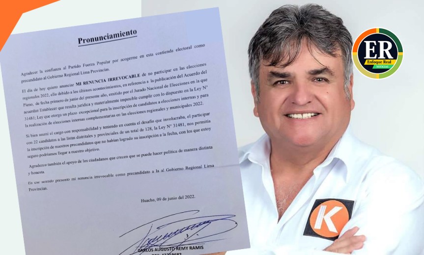 ¡La «k» se queda sin candidato regional!: coronel (r) Carlos Remy Ramis desiste de postular por mínimo número de aliados distritales y provinciales en la región Lima.