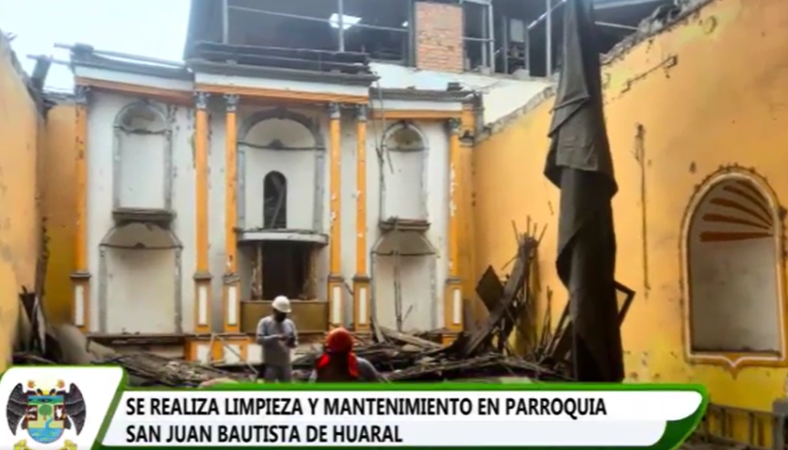 La Gerencia de Desarrollo Urbano y Rural de la Municipalidad Provincial de Huaral inició el trabajo de limpieza y mantenimiento de la parroquia San Juan Bautista, que en estos últimos años se encontraba abandonada desde el día que se desplomó parte del techo producto de los años de antigüedad.