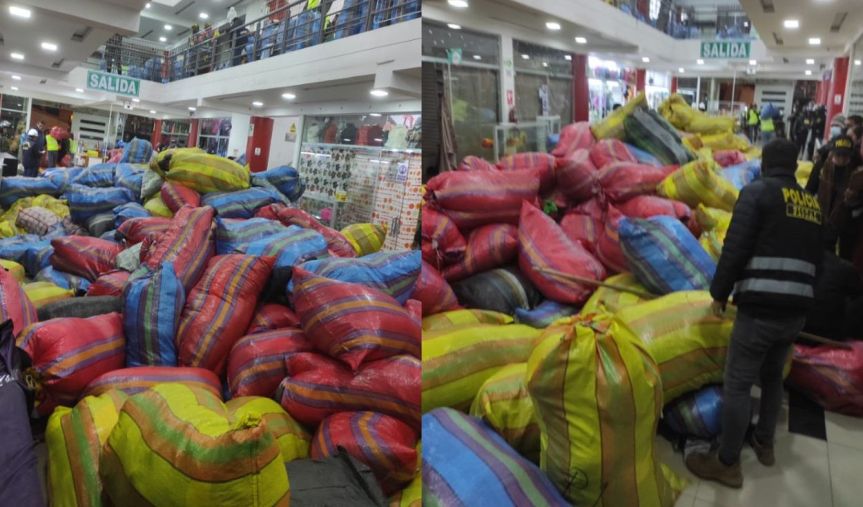Al interior del establecimiento se halló gran cantidad de prendas de vestir de segundo uso, al parecer provenientes del extranjero. Según la información preliminar, fueron 22 toneladas de ropa las que se encontraron en dicho establecimiento.