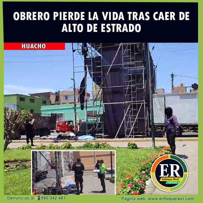 Un hombre identificado como Julio Quispe perdió la vida está mañana tras caer de lo más alto de un estrado que venía armando, en la plazuela Andrés Reyes Buitrón, en la ciudad de Huacho para la realización del mitin de cierre de campaña de un partido político.