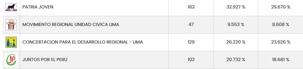 • 42 (95.455 %) Actas contabilizadas