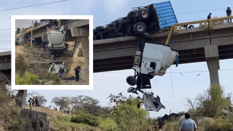 La mañana del miércoles 5 de octubre se registró un accidente de tránsito en Úcupe, provincia de Chiclayo (región Lambayeque), a la altura del kilómetro 765 de la Panamericana Norte. Un camión que transportaba un cargamento de mango con dirección a Lima se despistó y quedó con la parte delantera de la carrocería colgando sobre el puente.