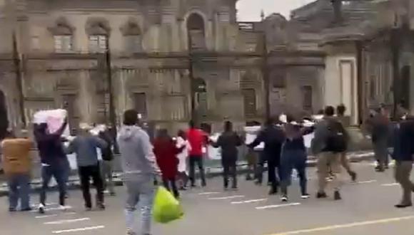Los apristas se retiraron del lugar pero se ubicaron a pocos metros y lanzaron arengas contra el gobierno de Pedro Castillo. Ellos alegaban su derecho a protestar en un espacio público.