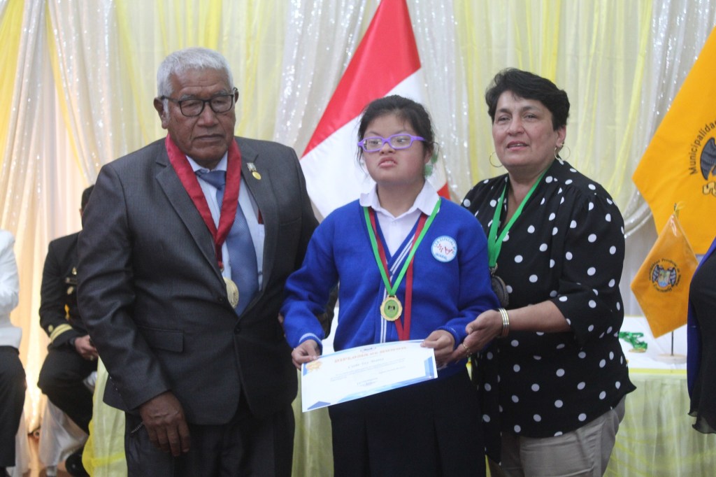 Asimismo, se reconoció con DIPLOMA DE HONOR la destacada participación de estudiantes con habilidades diferentes e inclusivos en los Juegos Nacionales Escolares Deportivos y Paradeportivos: del C.E.B.E. 02 Ronald Jesús La Cruz Ramos, Carla Angelina Tay Matta, José Luis Robles López, quienes destacaron en la etapa regional; Sebastián Francisco Donayre Colán, en la etapa macroregional; Katherine Selene Terres García, destacando en la etapa nacional y Flor Valentina Gómez Bojórquez, clasificada para la etapa sudamericana, todos ellos representando al distrito y provincia de Huaral.