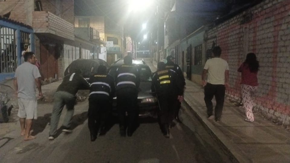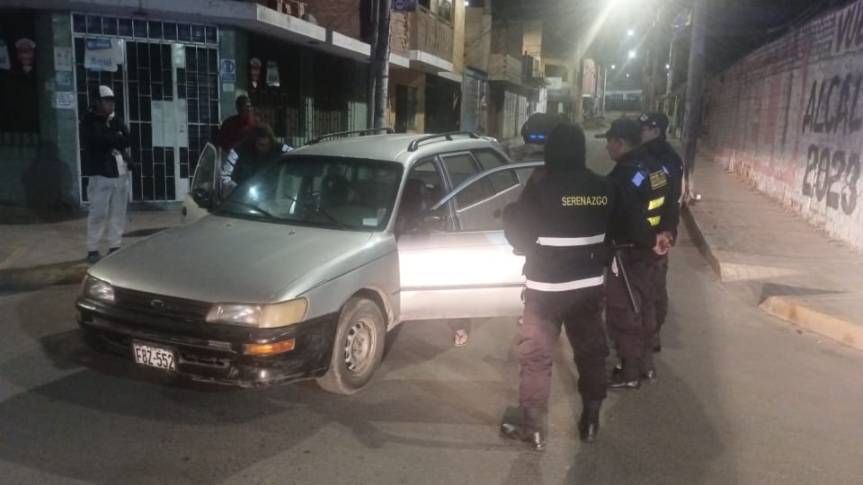 En circunstancias que personal de serenazgo realizaba el patrullaje cotidiano en la zona sur del distrito, se logra observar la presencia de individuos que de manera sospechosa retiraban el cobertor de un vehículo el cual se encontraba en la vía pública, y quienes al notar la presencia del personal de serenazgo emprenden la huida; ante ello personal de seguridad ciudadana ejecutan el plan cerco, logrando recuperar el vehículo el cual había sido abandonado por los delincuentes.