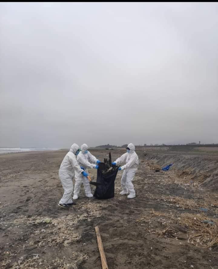 En un trabajo combinado, el equipo de intervención realizó un recorrido en la playa de Chacra y Mar con la finalidad de recoger las aves silvestres muertas en las últimas horas, posiblemente infectadas por la gripe aviar.