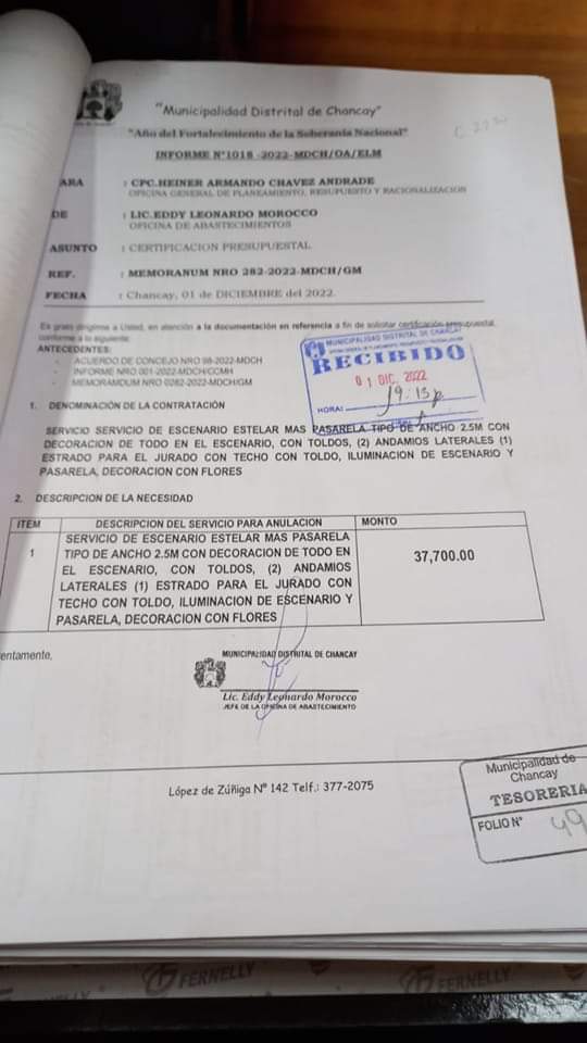 A continuación, les presentamos los siguientes documentos de los gastos hechos por el municipio chancayano, liderado por la alcaldesa Marita Robles.