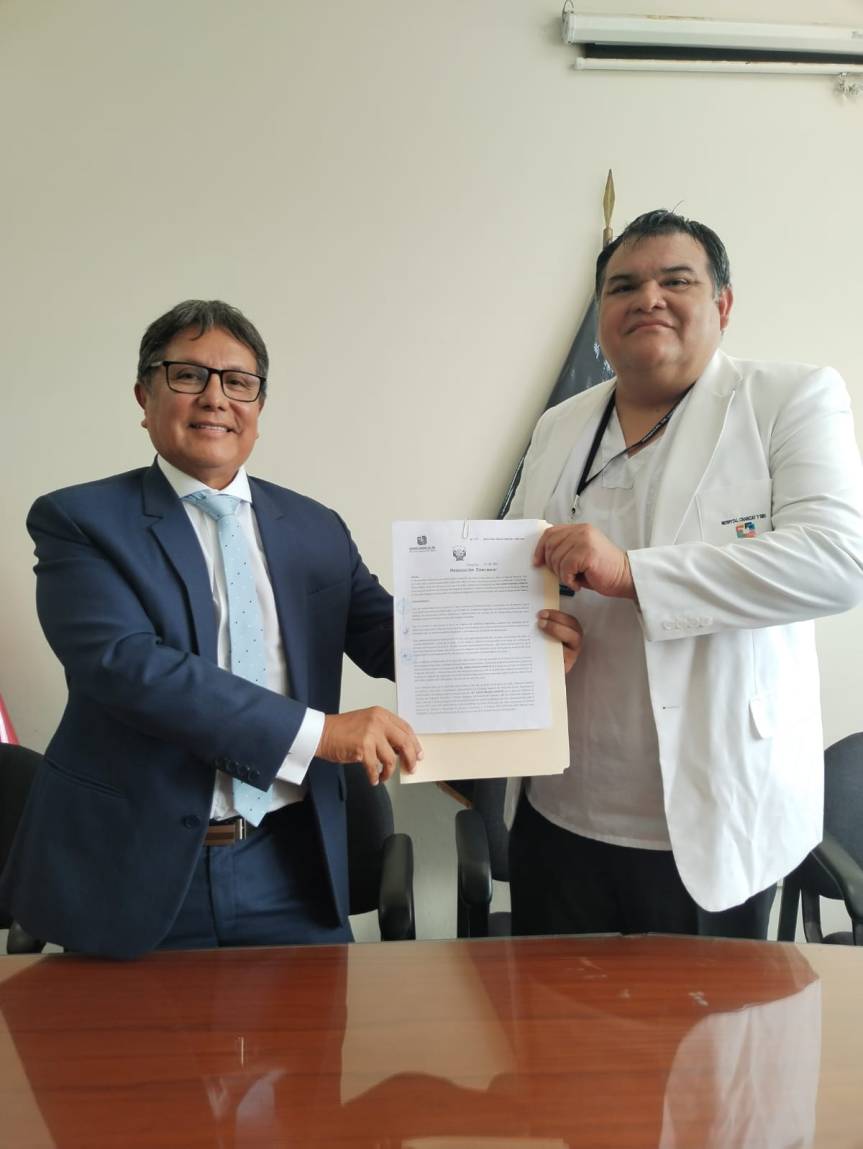 El director Regional de Salud, M.C. Roberto Peña Cruz, presentó esta mañana al director Ejecutivo del Hospital de Chancay, M.C. Mirko Molina Morote; designado mediante Resolución Directoral N° 38 – 2023-GRL-GRDS-DIRESA LIMA- DG.