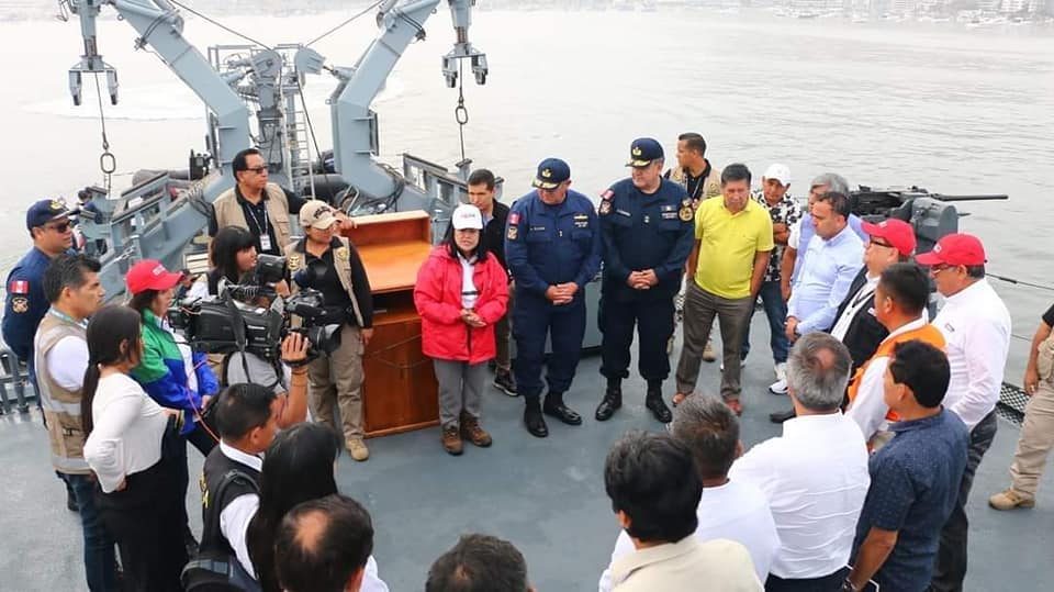 Añadió que se brindará apoyo a las municipalidades de las zonas afectadas para acciones relacionadas con la gestión adecuada de los residuos sólidos y la mejora de la limpieza pública en favor de la población. «Compartimos la preocupación de los pescadores y hemos socializado el plan pos Declaratoria de Emergencia Ambiental», añadió la ministra.