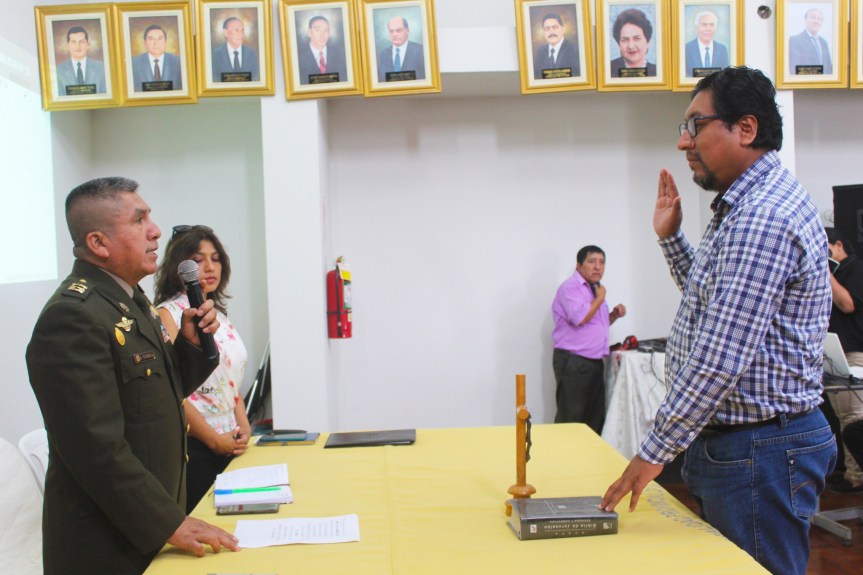 El acto de juramentación estuvo a cargo de Tec. Jefe de la ORMP 292 – A, Alfredo Vílchez Ancajima, quien juramentó al Gerente Municipal Arq. Luis Ramos Ostos, en representación del alcalde Fernando Cárdenas, enseguida las autoridades fueron juramentadas por el Pdte. del Comité de Movilización para ser parte de la misma.