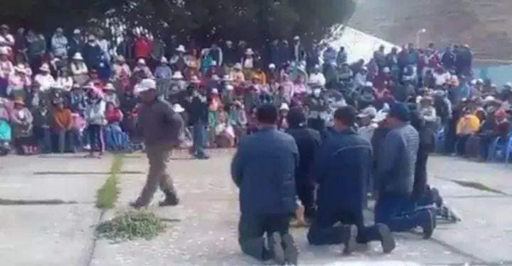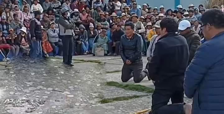 Frente a esta situación, la autoridad tuvo que pedir perdón de rodillas a su pueblo, por trabajar a espaldas y fue sometido a ejecutar “ranas”, “planchas” y otros ejercicios físicos en plena plaza de San Antón.