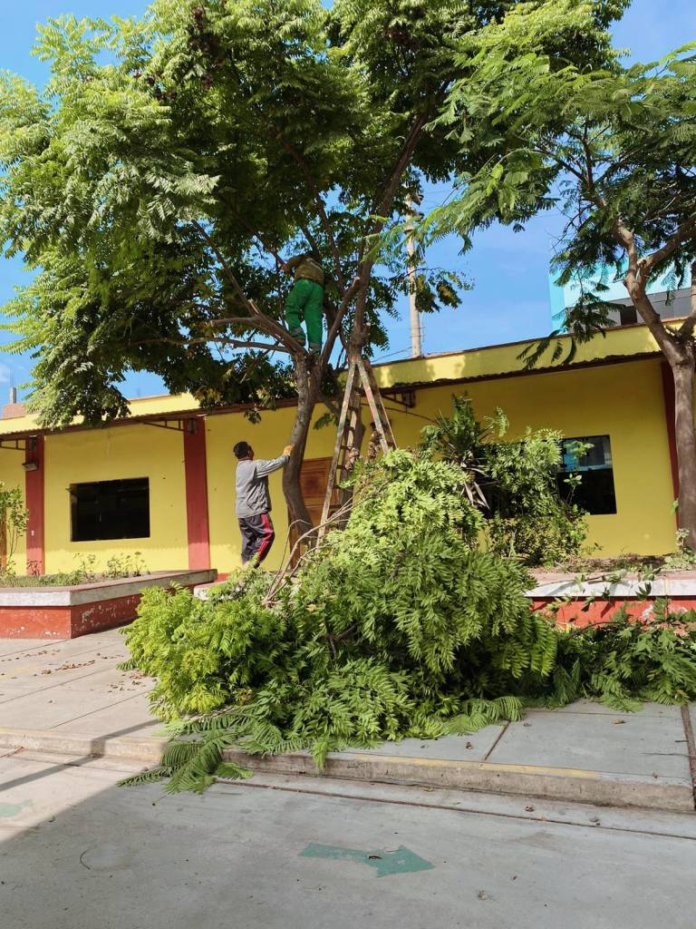 Por otro lado, también se realizaron la poda de árboles y limpieza de áreas verdes en colegios como, IE José Olaya, IE 20793 Libertador Don José de San Martin y la IE Nuestra Señora Del Carmen, tras el retorno del año escolar.