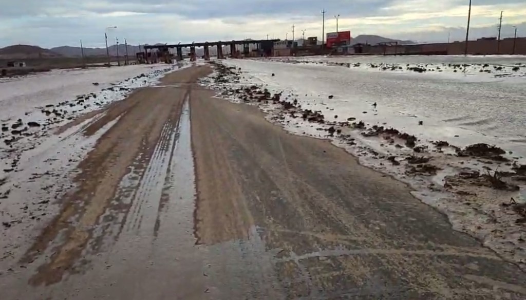 El deslizamiento de lodo, agua y piedras viene bloqueando la entrada del peaje en la vía hacia Lima y la situación podrían empeorar. Maquinaria pesada viene interviniendo la zona.