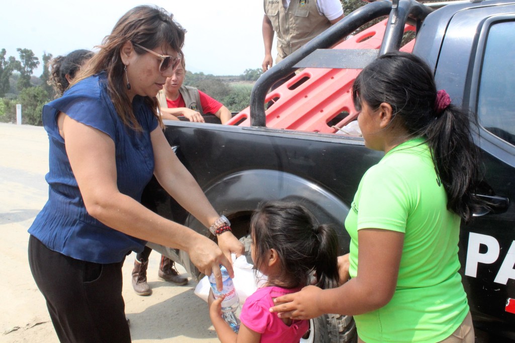 Un equipo de regidores, integrados por Cecilia Carvallo, Silvia Dorador y Julio Obando, llegaron hasta la zona de “La Mina” en el C.P. Cuyo, para realizar la entrega de raciones de alimentos y agua embotellada a los damnificados del lugar.