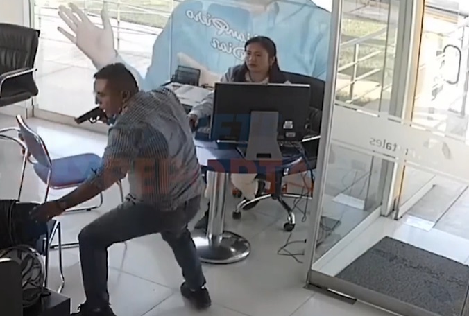 Sujetos en moto lineal ingresan a inmobiliaria a robar a una persona que había ingresado minutos antes para comprar lotes de viviendas. En segundos, delincuentes lo encañonan en presencia de las trabajadoras que estaban atendiendo, cogen su mochila donde habría la suma de 20 mil dólares, proceden a retirarse en una motocicleta con rumbo desconocido.