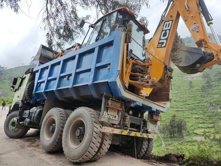 La maquinaria pesada llegaba al distrito de Santa Cruz de Andamarca para ayudar en la emergencia presentada por las lluvias y huaicos.