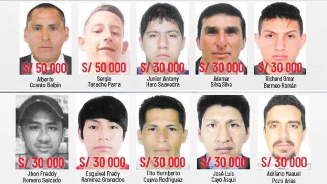Esa misma cantidad se entregará a quien dé información del paradero de Esquivel Ramírez Granados (30), buscado por asesinar a Yasmín Jara Granados, en Áncash; y por Tito Humberto Cueva Rodríguez (45), condenado a 22 años de cárcel por el feminicidio de su pareja Lucía Apéstegui.