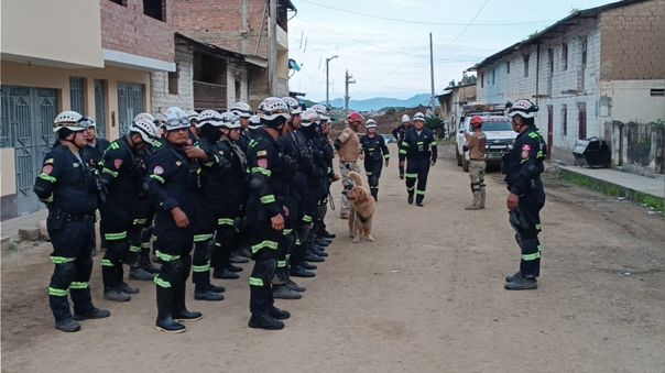Una de las unidades de rescate que viene inspeccionando la zona afectada está integrada por 27 efectivos de la Policía Nacional del Perú (PNP). A ellos se suma Fritz, un perro de raza golden retriever entrenado para la búsqueda y localización de cuerpos.