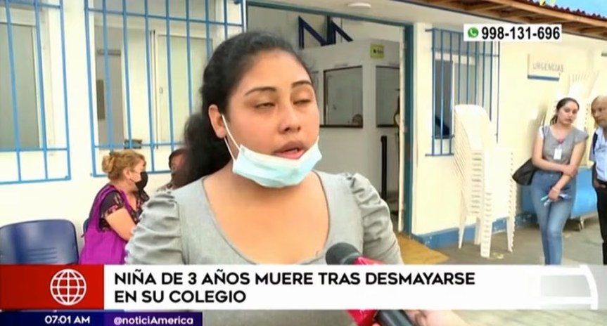 Estaba en su salón, en clases, haciendo sus actividades de forma normal, en la mesa, y mi hija se desmaya”, narró Gianella Falcón, madre de la menor fallecida, y aseguró que su hija no tiene ninguna enfermedad preexistente.