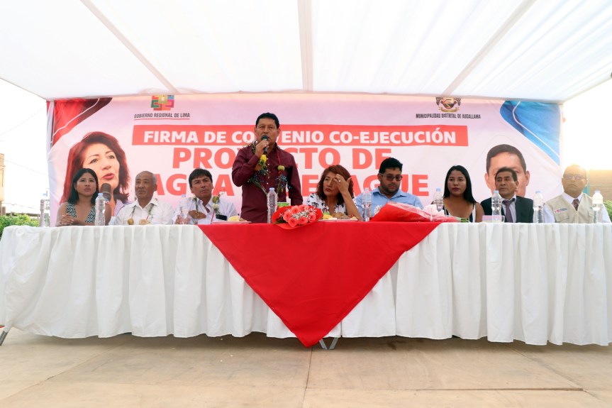 El sábado 22 de Abril se convierte en una fecha histórica para los aucallaminos y particularmente para los palpeños puesto que ese día se suscribió un compromiso ineludible entre el Gobierno Regional de Lima y la Municipalidad de Aucallama. Tal y conforme se había previsto se suscribió un convenio de co-ejecución de la obra de agua, desagüe y construcción de la PTAR para los centros poblados de Palpa, Cruz Blanca y Matucana, por lo que en plena plaza de Armas, es decir, en un acto público, la Dra. Rosa Vásquez, Gobernadora y Edwin Valdivia, Alcalde suscribieron el documento por la obra ascendente a más de 18 millones de soles, de los cuales se invertirá este año diez millones y ocho el próximo año.