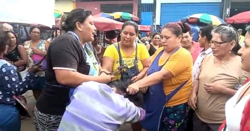 Al notar esta situación, Deysi Campos emprendió la fuga pero fue retenida por las vendedoras quienes con tijera en mano empezaron a cortarle el cabello y a recriminarle su mal accionar.