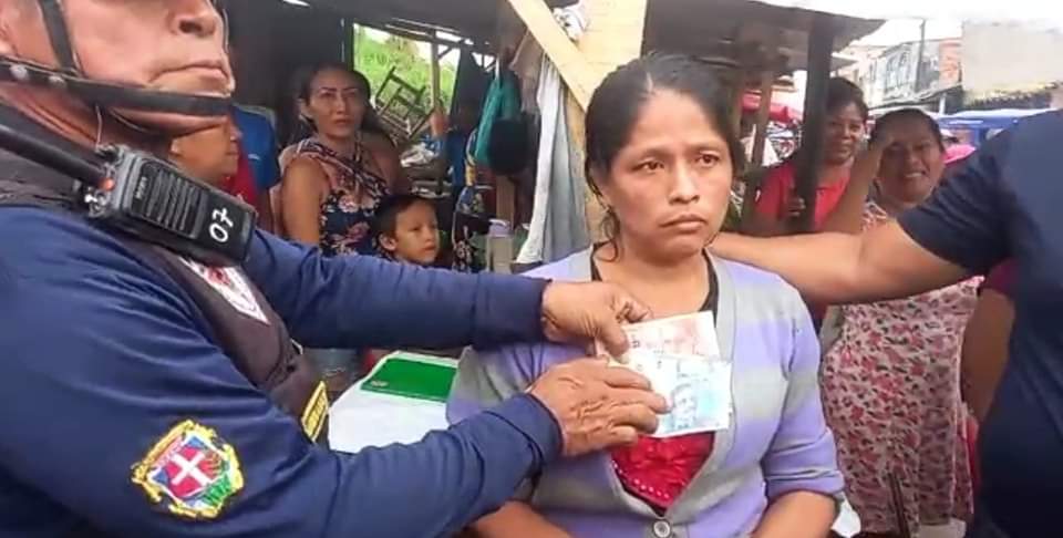 La mujer fue retenida por un grupo de vendedoras de pollos, quienes se percataron que el billete que la mujer tenía eran completamente falso. En su poder tenía 350 soles falsos para estafar a comerciantes.