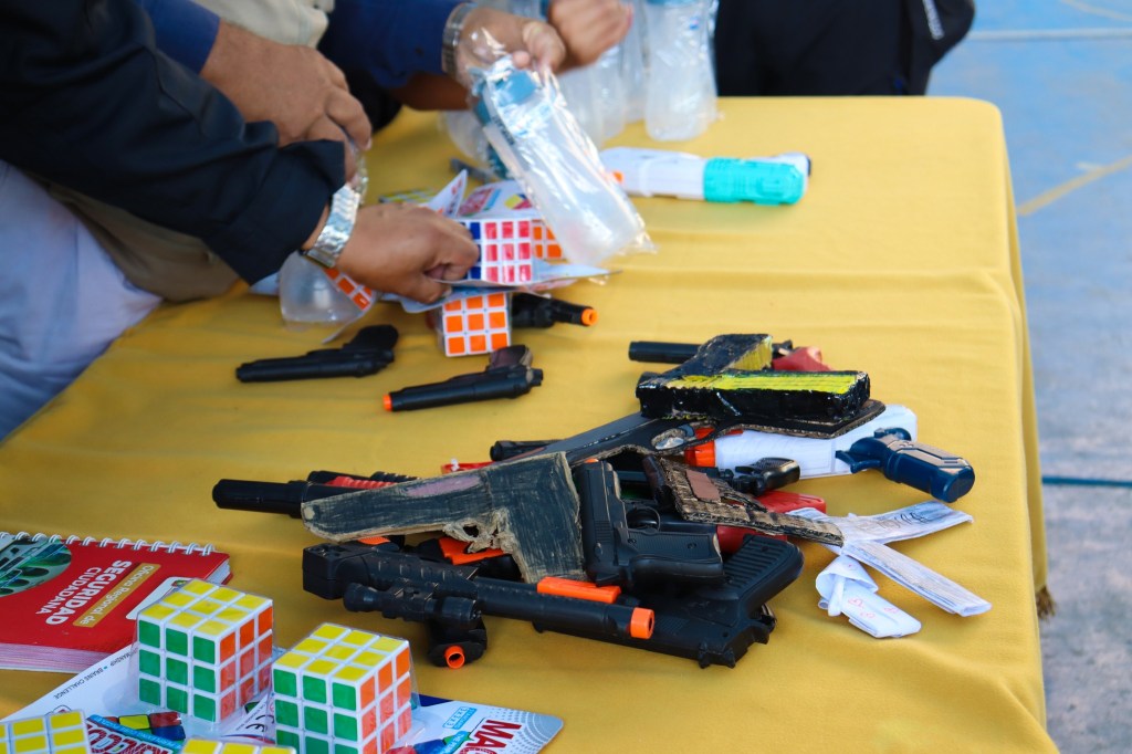 La campaña, que contó con el apoyo de la Policía Nacional y estuvo a cargo de la Gerencia de Seguridad Ciudadana, consistió en la entrega de cubos mágicos y tomatodos a cambio de que los menores entreguen sus juguetes réplicas de armas de fuego de todo tipo.