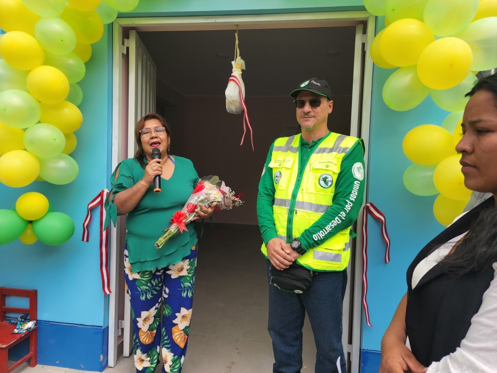 La ceremonia de entrega se inició con palabras de bienvenida del presidente del Asentamiento Humano Sr. Cesar Higashi Morinaka, seguido del acto litúrgico, estando presentes los padrinos del local la Señora Mónica Takayama Minetto, Ing. Juan Carlos Guzmán Carlín Superintendente de Responsabilidad Social Minera Colquisiri, Ing. Billy Echevarría, coordinadora del programa de PRONOEI Lic. Lupe Landeo, la profesora Lita Ortega, directivos del Poblado, entre otros invitados.
