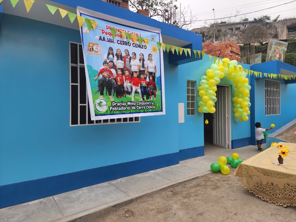 Ante la algarabía de la población, en horas de la tarde Minera Colquisiri cumplió con la entrega de la obra de construcción de PRONOEI «Pequeños Angelitos» en el Asentamiento Humano Cerro Cenizo zona de influencia, en el Marco de su Responsabilidad Social Programa de Desarrollo Educativo Integral: ColquiEducando.
