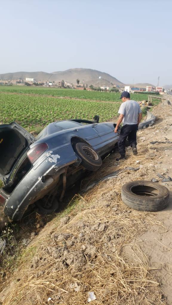 Esta mañana, un vehículo sufrió un accidente de tránsito y se despistó terminando a un lado de la carretera a punto de caer a una chacra.