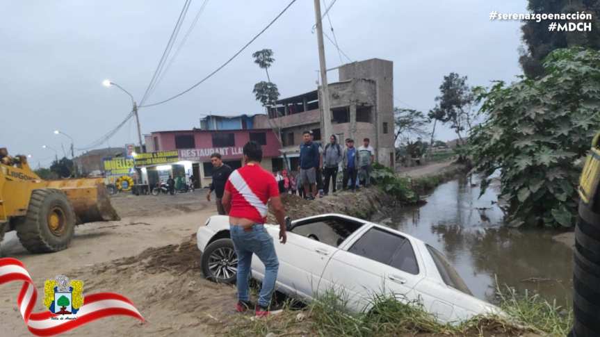 El equipo especializado en atenciones rápidas de emergencia llegó hasta la zona norte, ante el llamado de los vecinos a consecuencia de un accidente de tránsito; un vehículo que sufrió un despiste fue rescatado del canal de regadío por colaboradores, efectivos de seguridad ciudadana y Policía Nacional del Perú, quienes atendieron la emergencia.