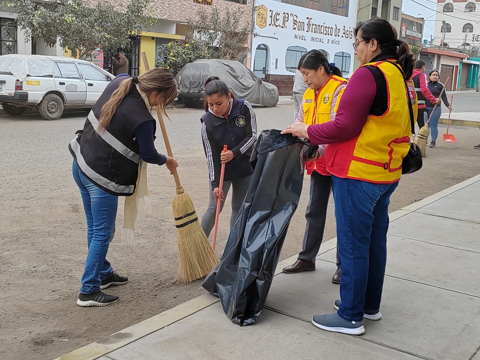 De la mano de los integrantes de la junta vecinal del sector y del director de la Institución Educativa «Clara Nichos Mansilla» se llevó a cabo la jornada de limpieza, como una de las actividades programadas en esta etapa para restaurar la seguridad en favor de nuestros vecinos y escolares.