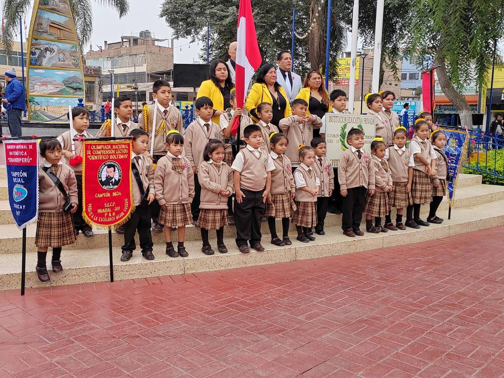 Como cada domingo se llevó a cabo la Ceremonia de Izamiento, acto que contó con la participación de la delegación de promotoras y docentes de los PRONOEI de Huaral, así como de las escoltas y docentes de las Instituciones Educativas «Gotitas del Saber» del Trébol y «Libertador José de San Martín» de Retes.