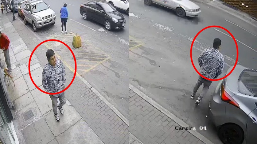 Las cámaras de seguridad de la zona captaron a un sujeto de aproximadamente 35 años, de contextura gruesa, camisa blanca con puntos negros, pantalón gris y zapatillas blancas con negro, que rodeó en varias ocasiones el vehículo, forzó la puerta delantera y se llevó la unidad en cuestión de minutos.