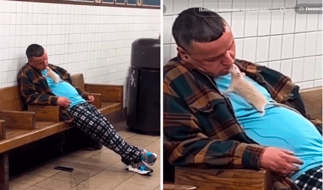 Como se vio en una grabación compartida en la cuenta @Meme_yen, un hombre estaba profundamente dormido en una de las bancas de una estación del metro. Hasta su celular se le había caído al piso mientras él continuaba con los audífonos colocados en sus orejas.