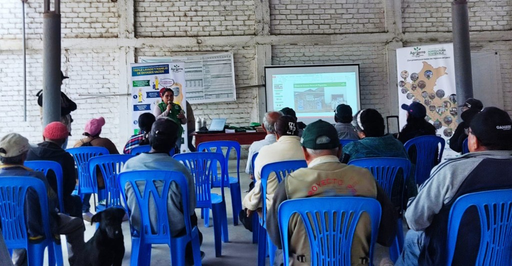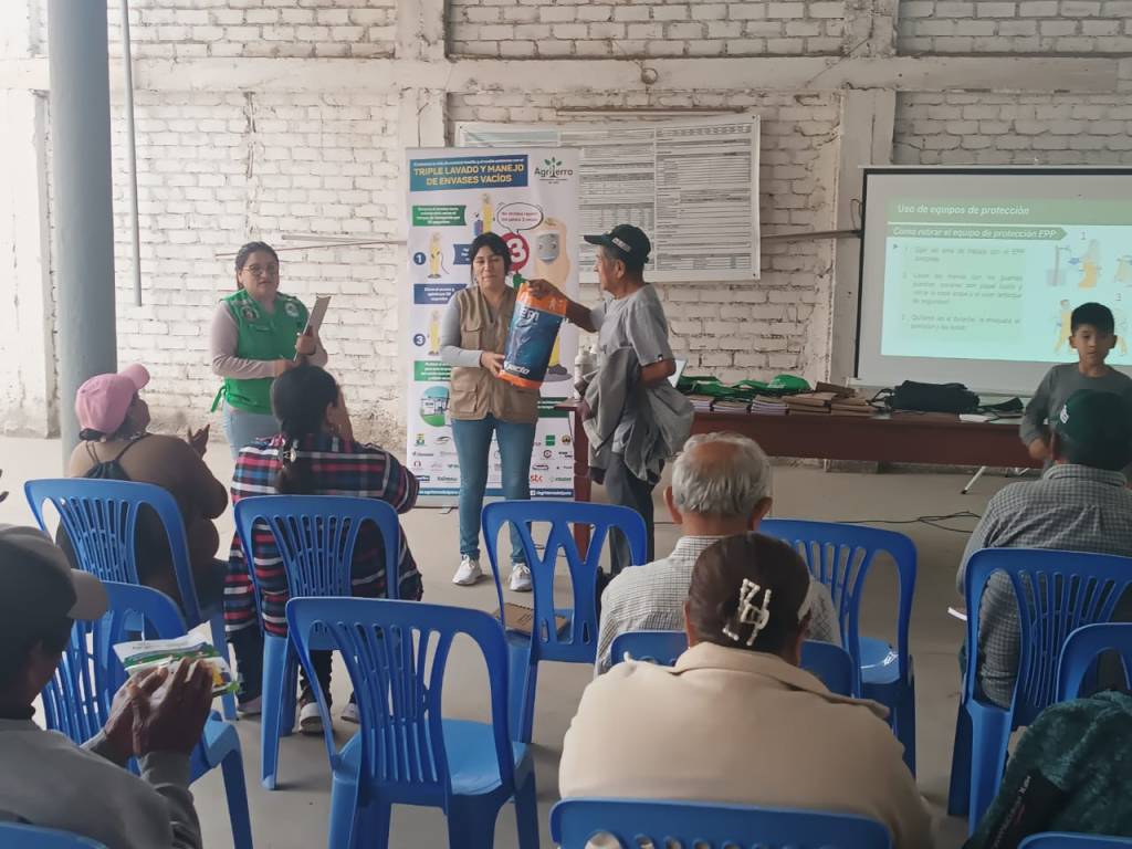 Dicha jornada se llevó a cabo en el Local de la Comisión de Usuarios de Palpa, donde nuestros agricultores fueron capacitados sobre la importancia de realizar correctamente el triple lavado, que consiste en enjuagar tres veces el envase tras el uso del plaguicida, antes de ser perforados y ubicados en un centro de acopio para su disposición final.