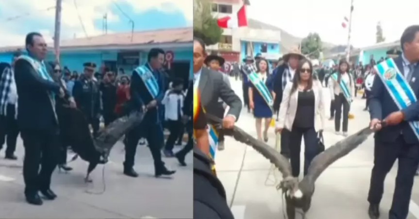 El alcalde de Coyllurqui, Fritz Valencia, generó indignación en la ciudadanía del distrito luego de ser captado arrastrado un cóndor andino contra su voluntad como parte de una actividad del desfile por Fiestas Patrias en este sector de Apurímac.