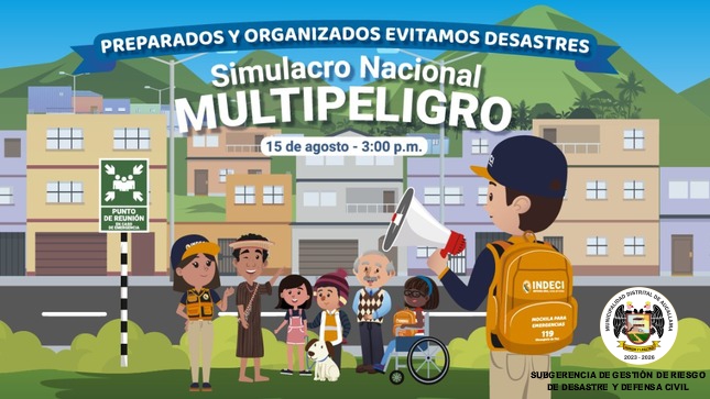El Instituto Nacional de Defensa Civil (INDECI) convoca a la población a participar en el segundo Simulacro Nacional Multipeligro del año, que se realizará el martes 15 de agosto a las 3:00 p.m. con el propósito de que la población pueda identificar los peligros en su localidad, organizarse con sus autoridades y repasar el Plan Familiar de Emergencia.