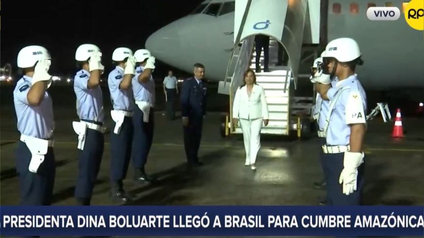La mandataria Dina Boluarte llegó a la ciudad de Belém do Pará (Brasil) para participar de la IV Reunión de Presidentes de los Estados partes en el Tratado de Cooperación Amazónica (TCA), que se realizará el 8 y 9 de agosto.
