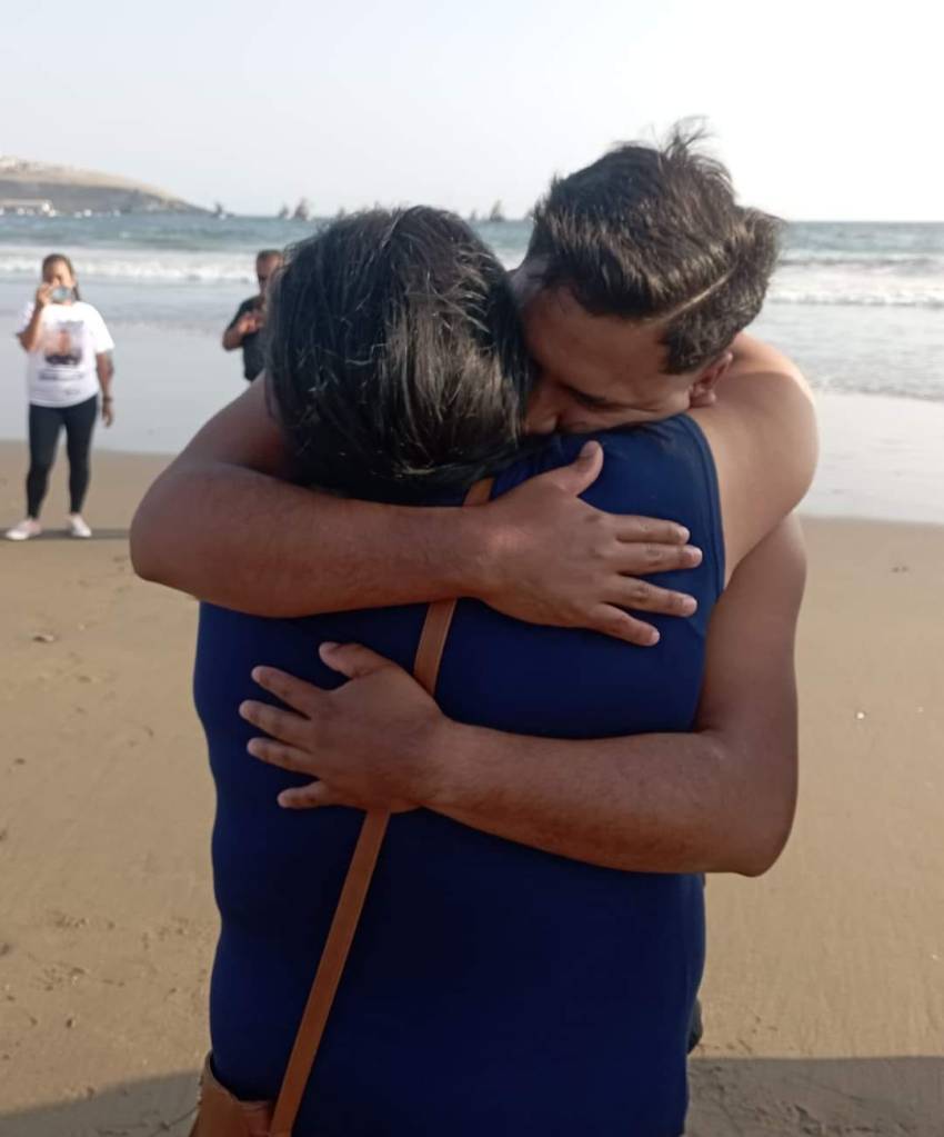 Al marcar las 4.35 de la tarde, hora en que ocurrieron los trágicos sucesos, aquella tarde del 8 de julio, el efectivo Marco Medina, quien también participó del rescate, ingresó al mar y dejó una ofrenda floral en memoria del recordado sereno.