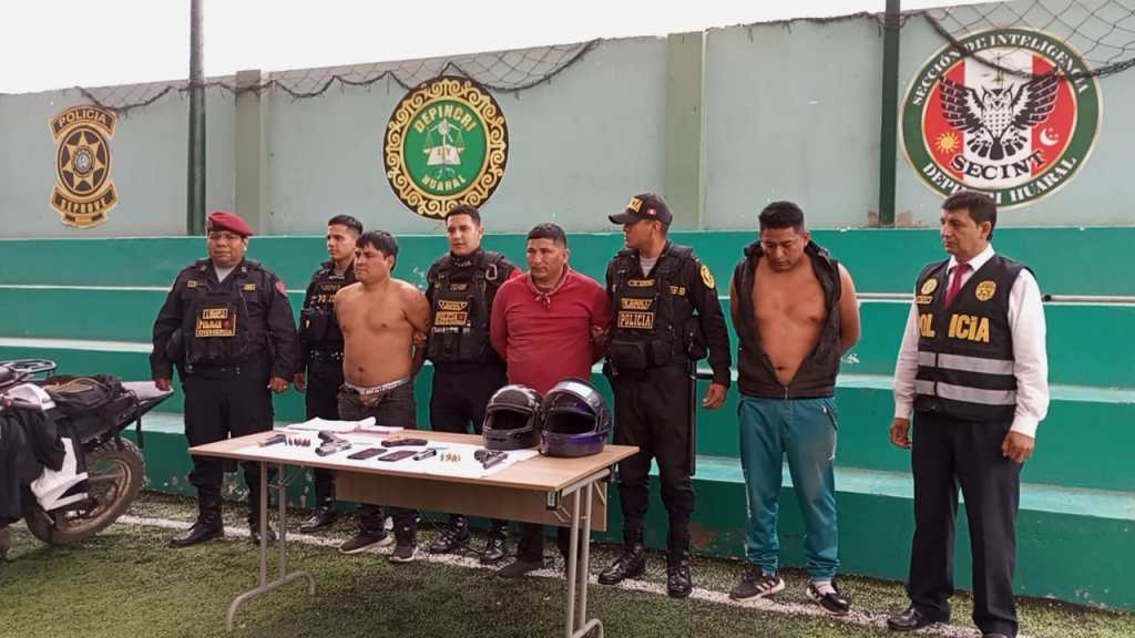 En rápido accionar, la Policía Nacional del Perú logró la detención de tres personas, presuntos integrantes de una organización criminal, dedicada a la extorsión, sicariato, asalto y robo a mano armada que causaba terror en la provincia de Huaral.