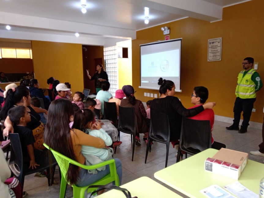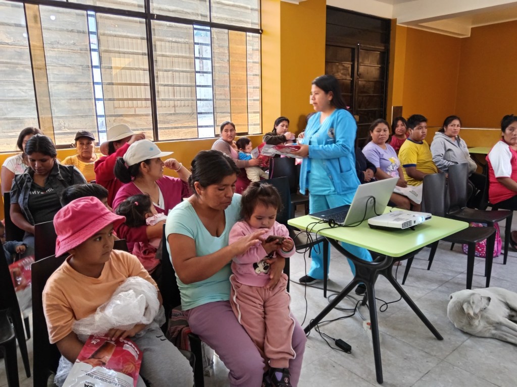 Las mamitas y sus pequeños fueron convocados en la capacitación para asesorarlos en la preparación del batido y los alimentos que obtienen hierro para combatir la anemia.
