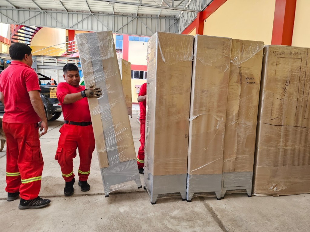 Los ingenieros Juan Carlos Guzmán y Billy Echevarría junto al Personal de Minera Colquisiri llegaron en horas de la mañana con todo los implementó de donación ante la alegría de los hombres de rojo huaralinos. Todo el cargamento junto a la respectiva acta fue Recepcionado por el jefe de la compañía bomberil, Julio Martín Bazalar.
