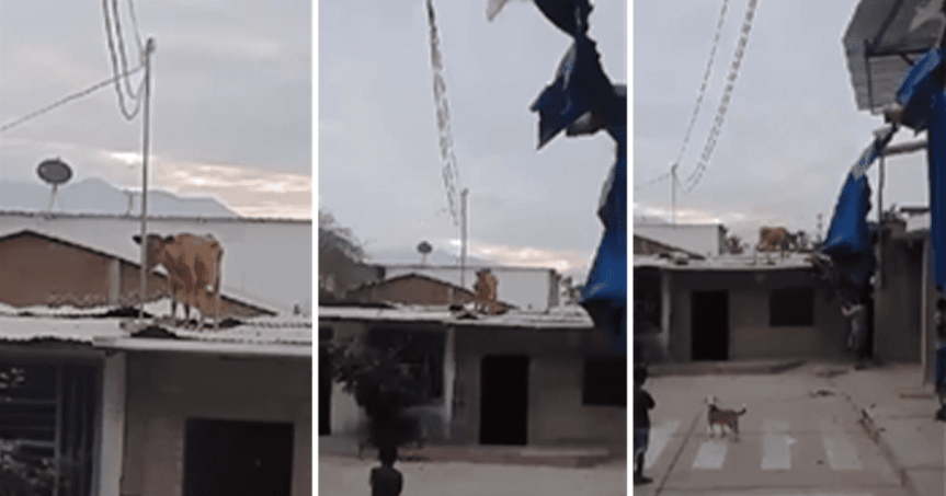 Los vecinos de este lugar no se explicaron cómo esta vaca llegó a trepar este techo y caminar como si nada pasara. Además, los dueños de la propiedad se encontraban asustados por el deterioro de las calaminas que causó el animal. Los usuarios reaccionaron ante este insólito hecho, «Cómo es posible este suceso», «Las vacas vuelan», comentaron en Facebook.