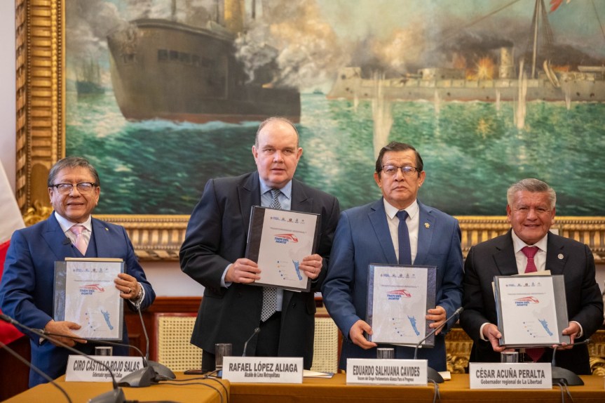 Gobernadores regionales del norte del país participaron en la presentación del proyecto «Tren del Norte», destinado a conectar las provincias de Tumbes y Lima. Este proyecto beneficiaría a más de 14 millones de personas, generaría empleo, además de potenciar las regiones agroexportadoras.